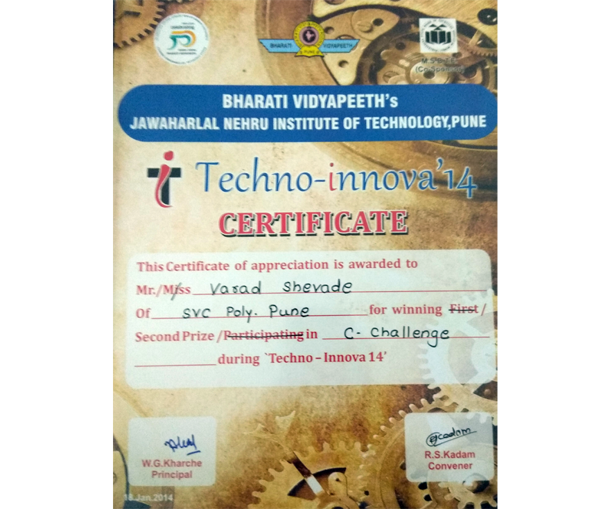 Certificate - Sou. Venutai Chavan Polytechnic, 2014