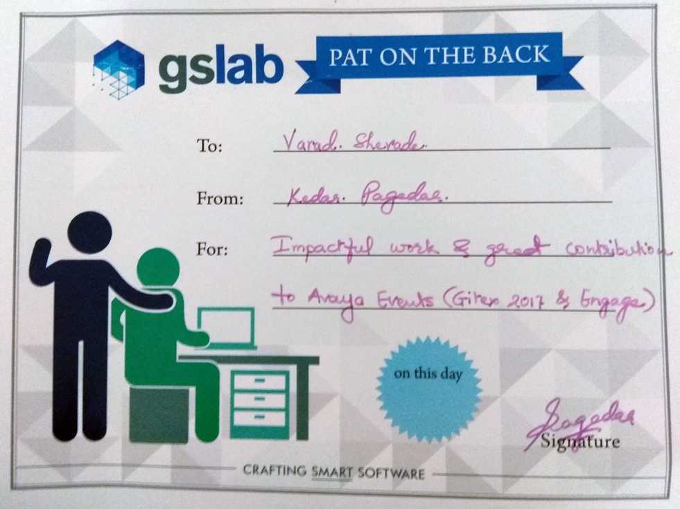 Pat on the Back - GsLab, 2017