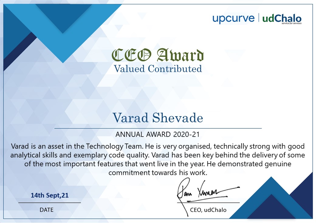 CEO Award - udChalo, 2021