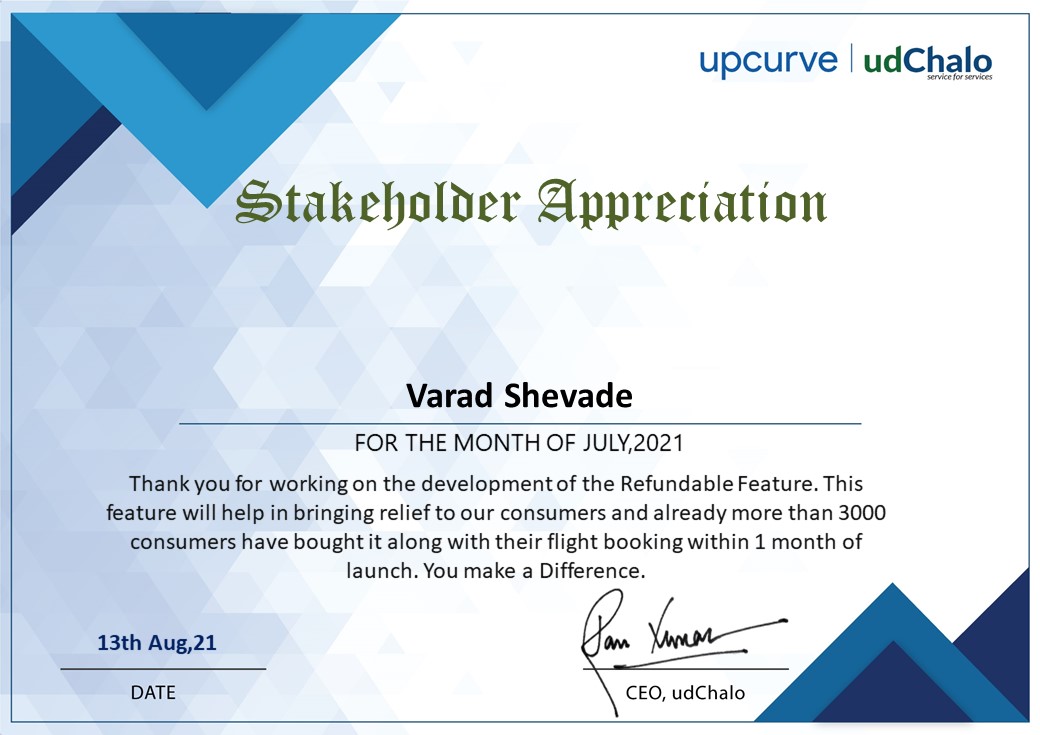 Stakeholder Appreciation - udChalo, 2021